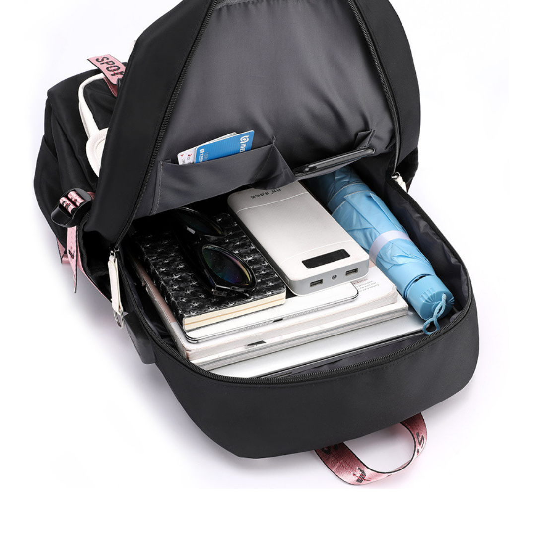 – 1 Bolsa principal para cuadernos, libros, ropa, etc.